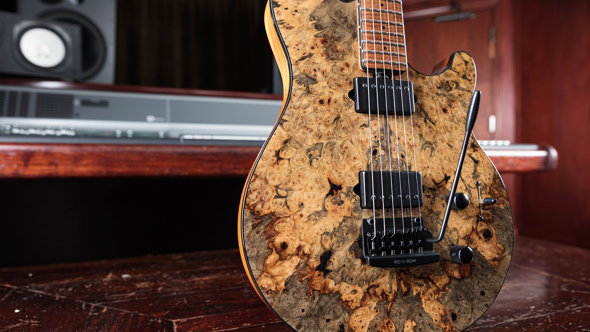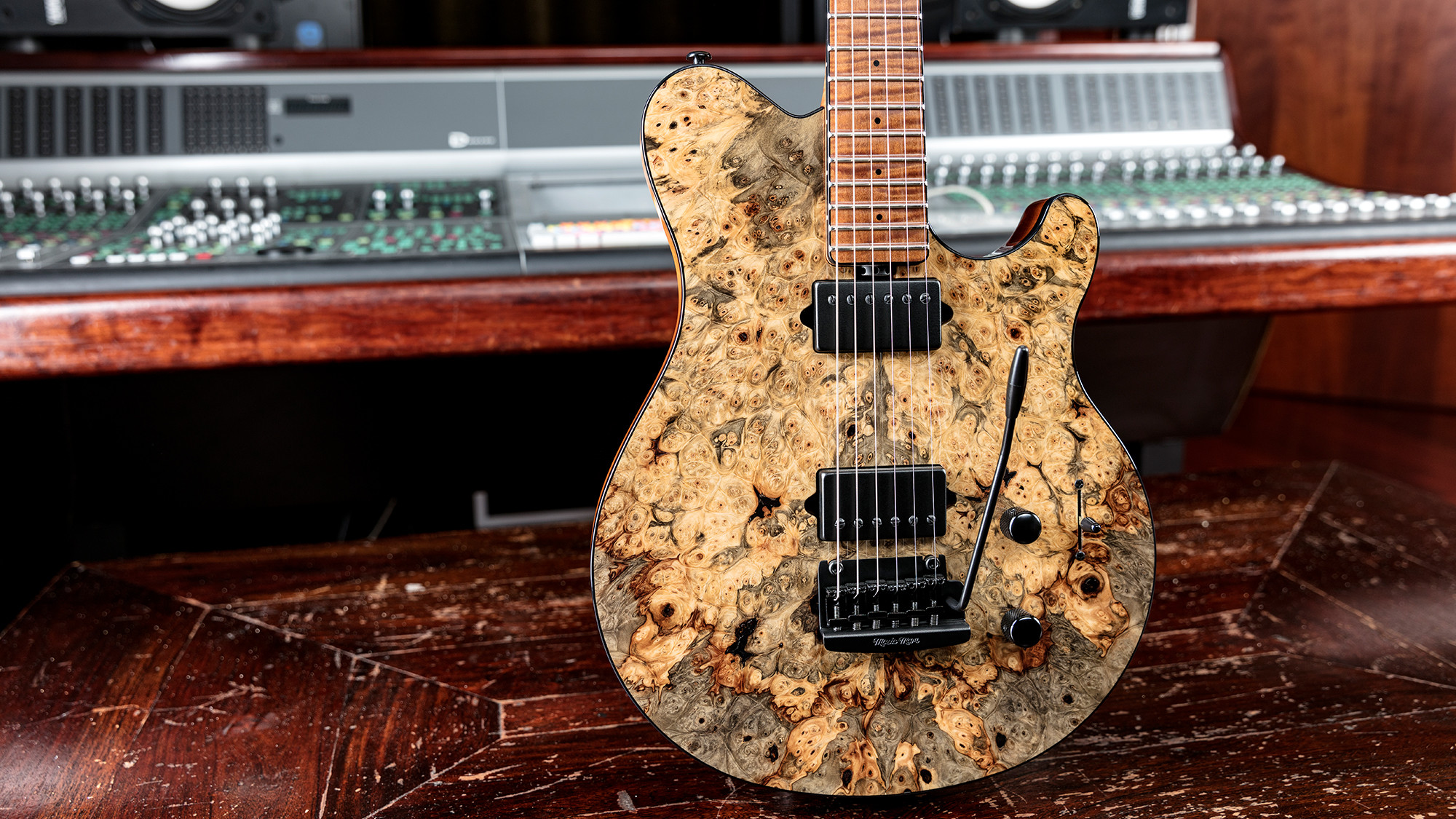 エキゾティックなバッキー・バール・トップに黒いバインディングを施したアフリカン・マホガニー・ボディが特徴のスペシャル・エディション・アクシス・スーパー・スポート。