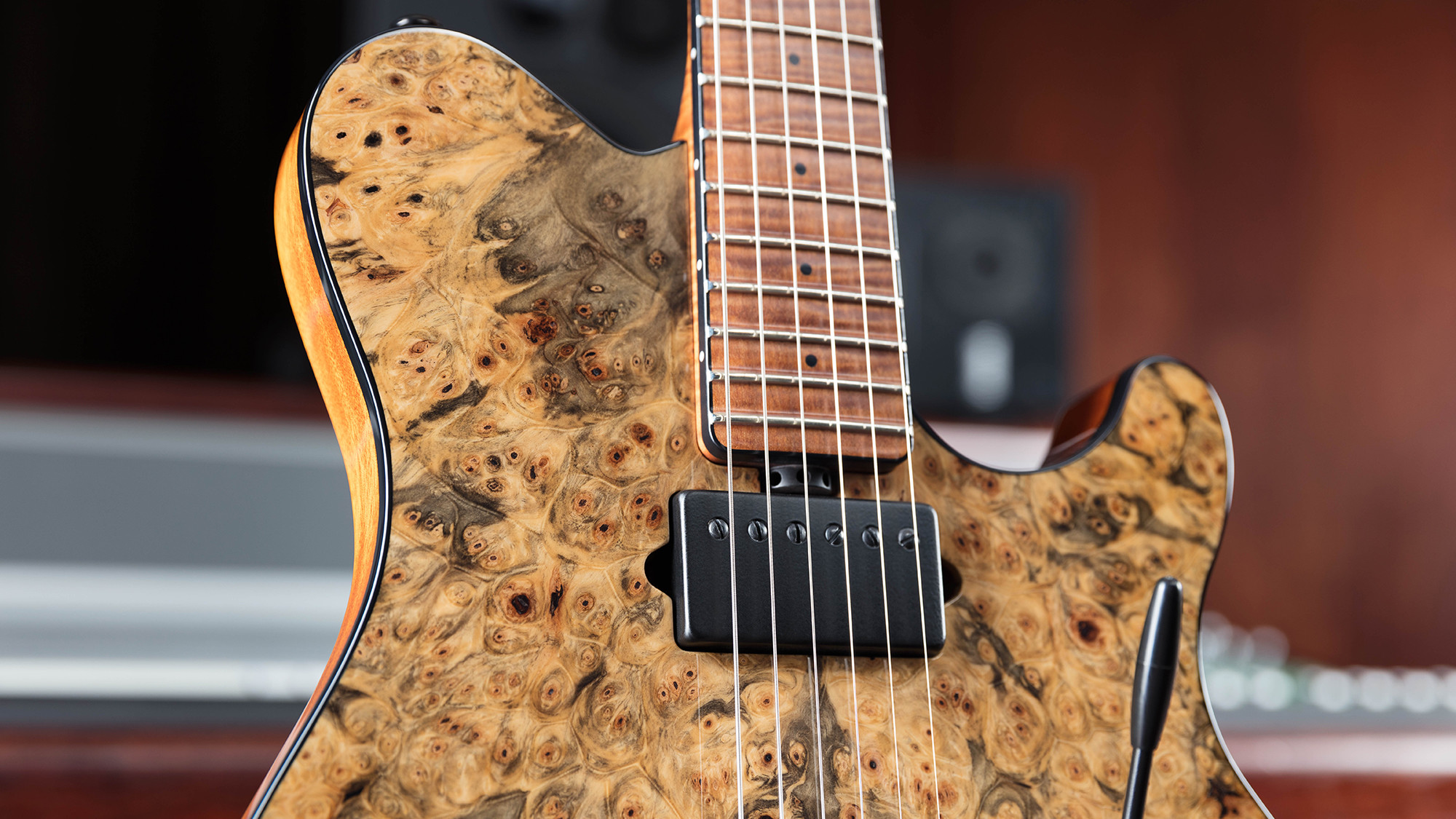 美しいオーバーサイズドのフレイム・メイプル・シールドを採用し、この楽器独自の美しさを際立せています。